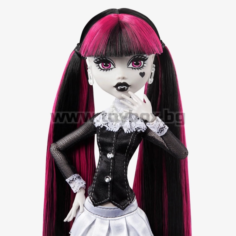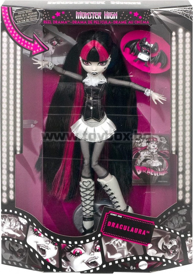 Съдържание: x1 кукла Дракулаура, x1 мини филмов плакат, x1 домашен любимец, x1 филмов плакат в реален размер, x1 стойка за кукли