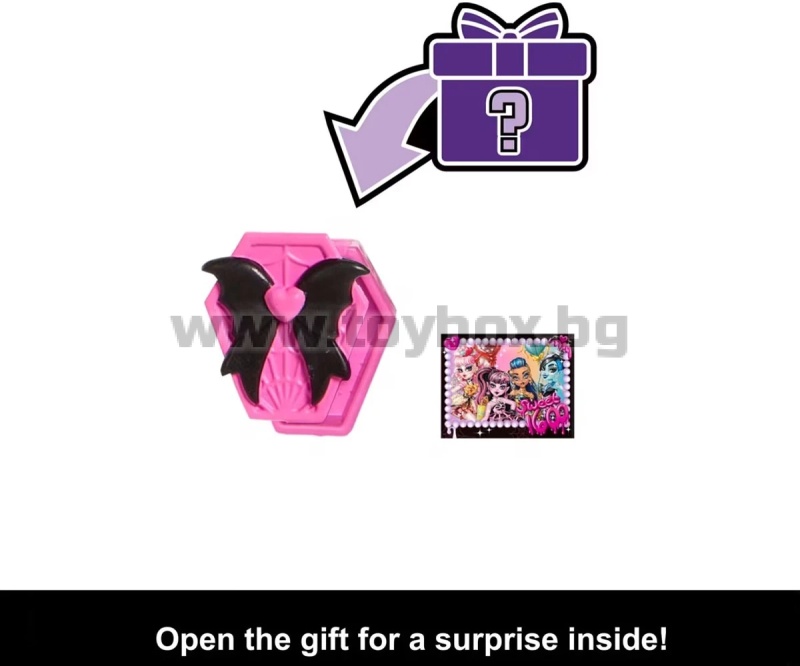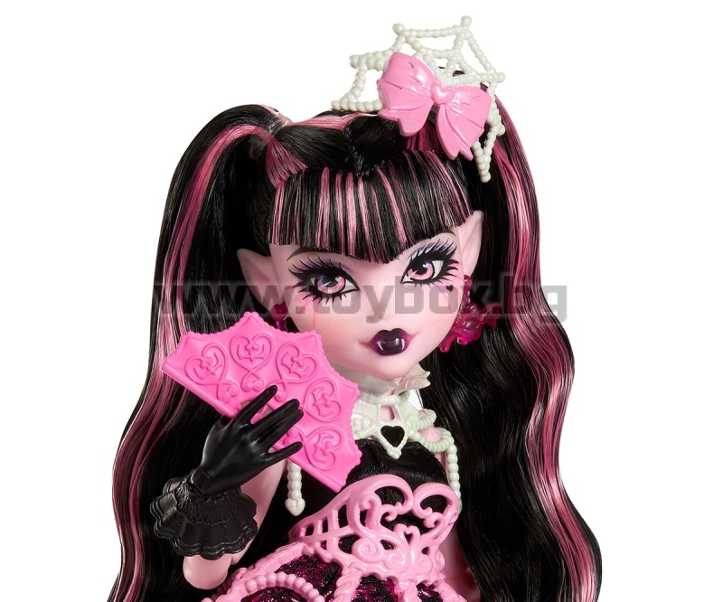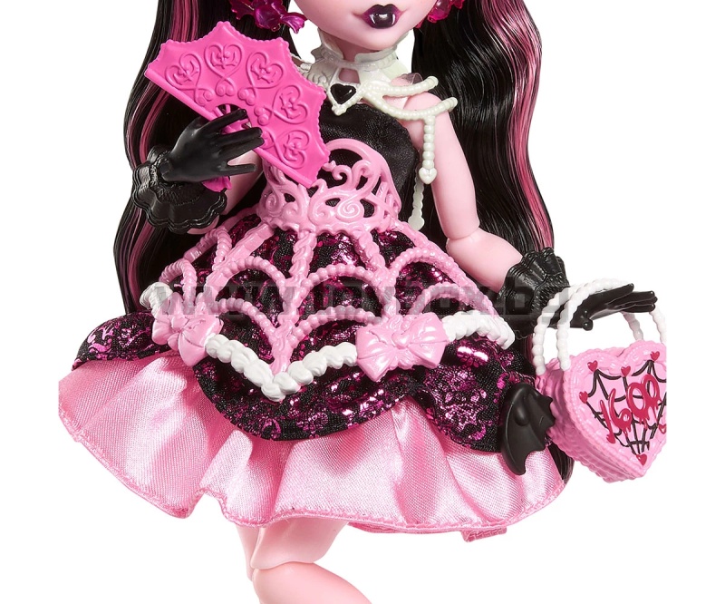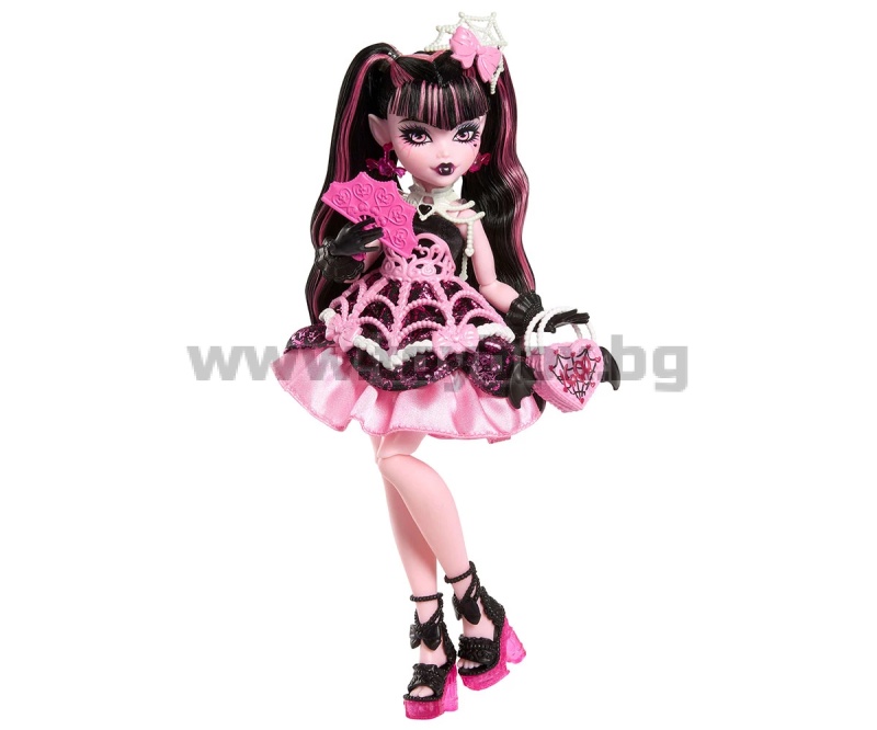 - Идеален избор за феновете на Monster High и за деца, които обичат модата и въображаемата игра; Дракулора носи сатенена розова рокля с ефектна пола като паяжина и черни ръкавици, които допълват празничната ѝ визия;