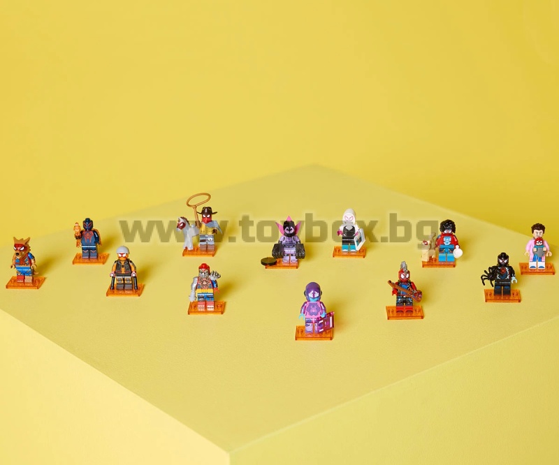 - Играчки за построяване със Спайдърмен – децата на възраст над 5 години могат да се насладят на приключения със супергерои с гама от герои LEGO® Minifigures Спайдърмен: през Спайди-вселената, с по 1 минифигура във всяка мистериозна кутия;