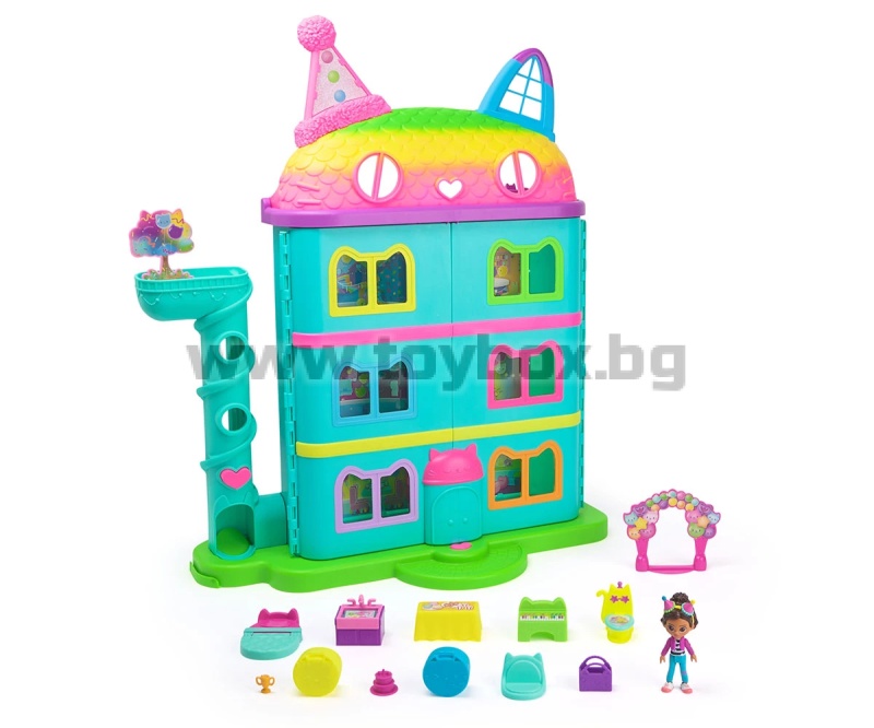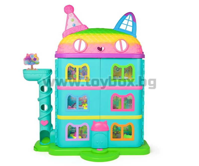 Открий омагьосващия свят на Gabby’s Celebration Dollhouse – къща за кукли с височина 60 см и с цветовете на дъгата!