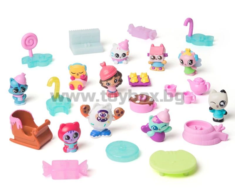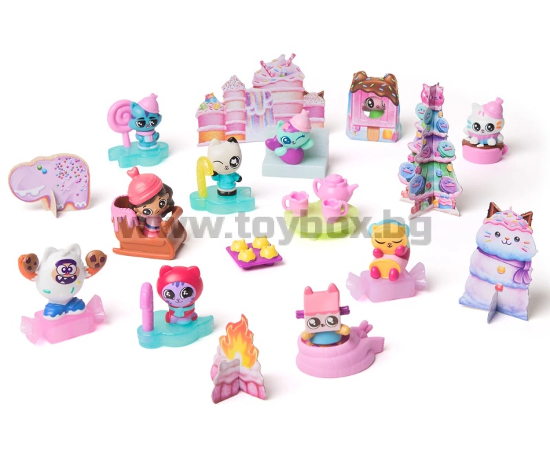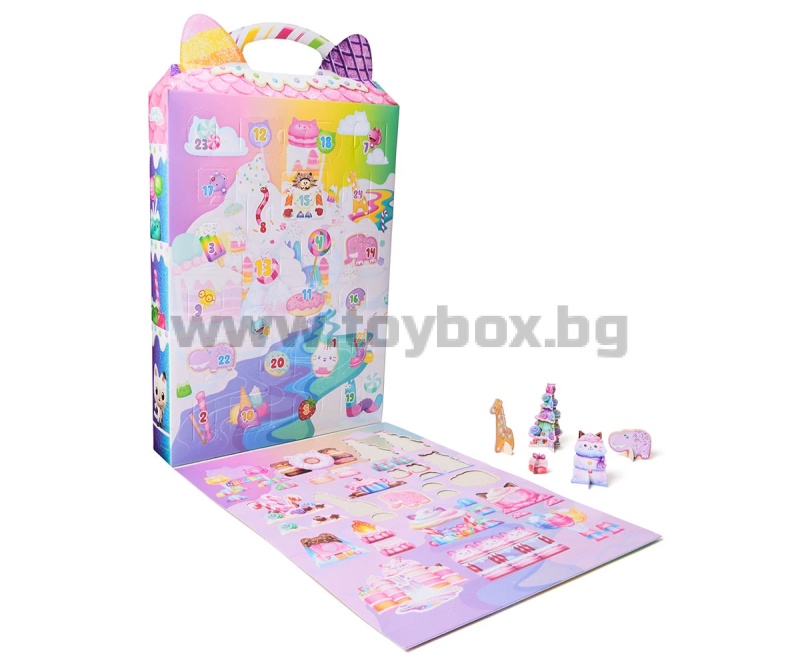 Децата могат да комбинират фигурките и аксесоарите, за да създадат зимна захарна приказка, пълна с въображение и игра. Адвент календарът е чудесен начин да вдъхнови ролеви игри и креативно мислене, като същевременно предоставя на малките фенове възможност да преживеят любими моменти от филма Gabby’s Dollhouse или да създадат нови истории в своята къща за кукли.