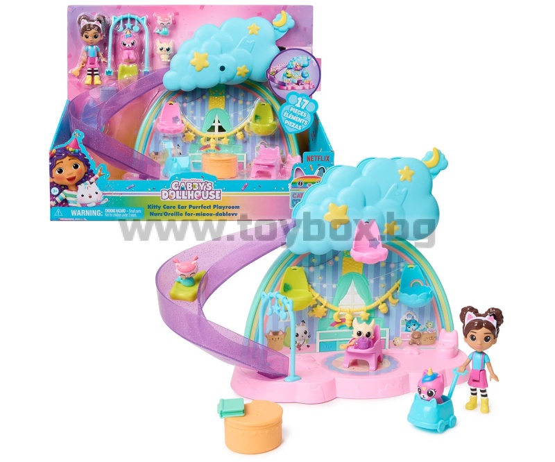 - Name: Spin Master 6071538 - Gabby's Dollhouse: Kitty Care Ear Purrfect Playroom 17 Piece Playset