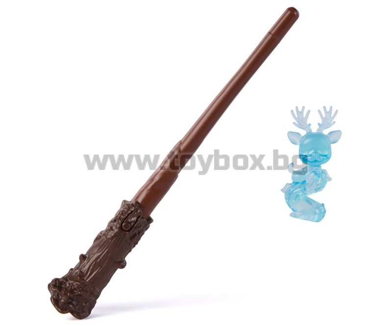 - Фигурата на Патронуса (6.5 см) озарява с блясък, когато пръчката е активирана – създавай магия у дома, както в любимите филми;