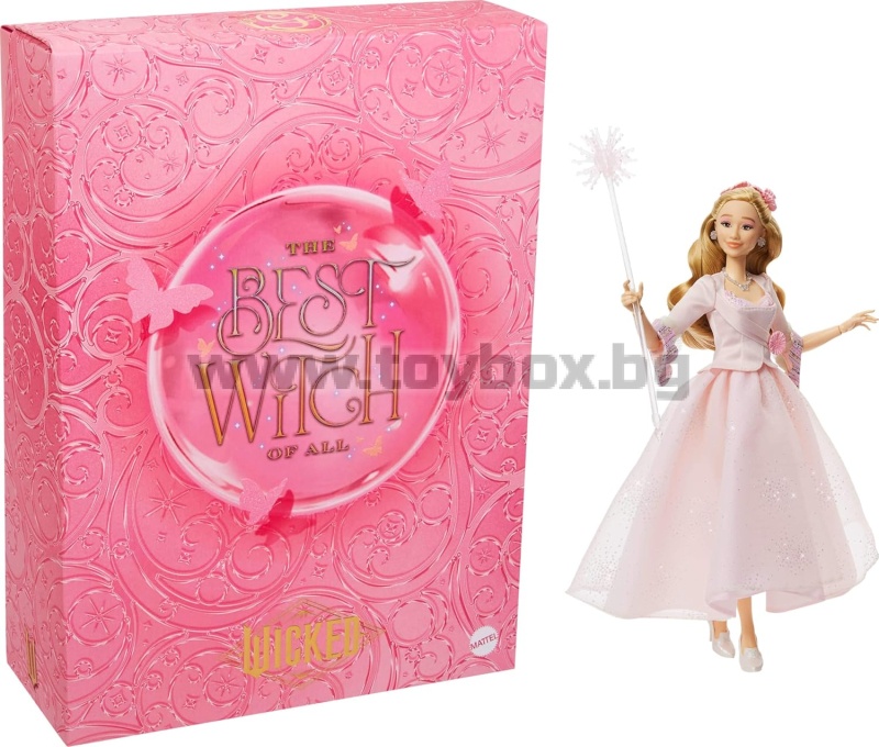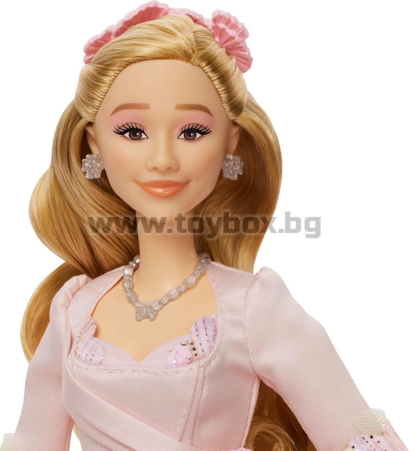 - Куклата Глинда носи добри новини, изложени в нейната автомобилна, сферична опаковка от глобули и 11 точки на артикулация.
