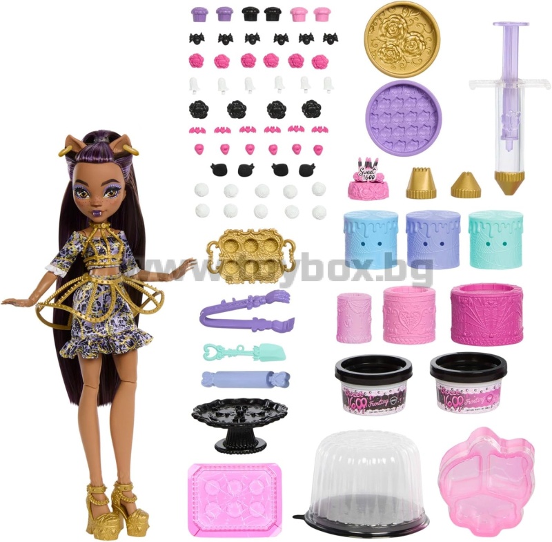 - Украсете торти с комплекта за торта за рожден ден „Страшна сладка“! Този сладък и зловещ комплект на Monster High се предлага с куклата Клодийн Улф и над 20 части за безкрайно творческо забавление.