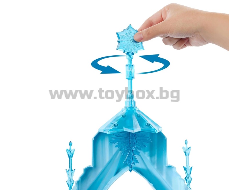 Снежинки, разположени из целия замък, насочват децата да използват своите „ледени сили“, вдъхновени от Елза, чрез натискане, издърпване или завъртане, за да отключат 4 магически функции – включително да „създадат“ Олаф от сняг, точно както в незабравимия филмов момент!
