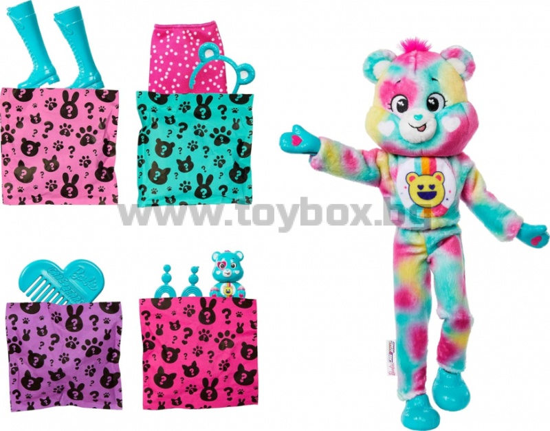 • С 10 изненади за откриване, куклите Barbie Cutie Reveal от серията Care Bear предлагат на децата вълнуващо преживяване, с техните плюшени приятели, очарователни тоалети и възможности за трансформация! Коя кукла ще откриете?