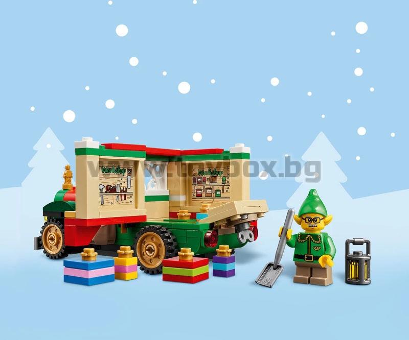 - Минифигурка магия – Коледният LEGO® комплект оживява от минифигурка елф, която седи на шофьорското място в камиона на Дядо Коледа;