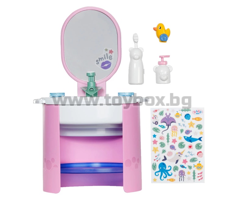 BABY born Мивка за кукла - интерактивна добавка към грижата за кукли. BABY born мивката за кукла е чудесен аксесоар, който прави грижата за куклата още по-реалистична и увлекателна. Децата могат да „мият“ своите кукли BABY born с помощта на функцията за течаща вода, която включва особено грижовната игра и отговорността.