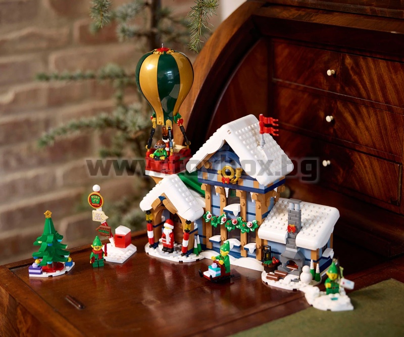 - Какво има в кутията? – моделите включват пощата на Дядо Коледа, балон с горещ въздух, сортировач за писма,сцена с риболов на лед, коледно дърво, табела, пощенска кутия и шейна, както и минифигура на Дядо Коледа и 4 фигури на елфи;