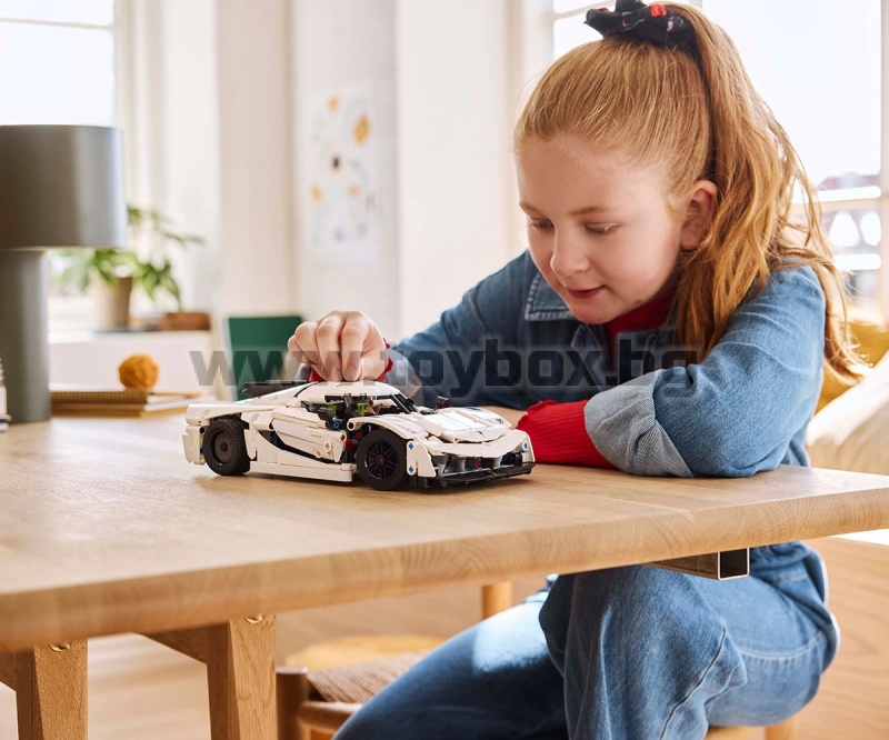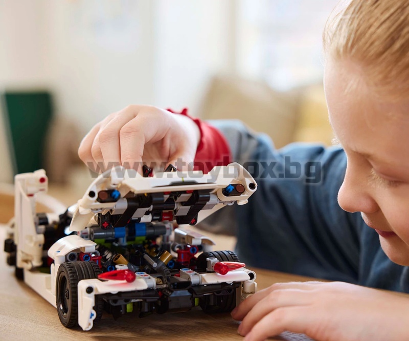 Дайте вълнуващ проект на момчетата и момичетата на възраст 10+ за сглобяване на този модел на кола за конструиране: LEGO® Technic Бяла хиперкола Koenigsegg Jesko Absolut (42184). Удовлетворяващо предизвикателство очаква децата, докато сглобяват реалистичните детайли. И построяването е само началото! Тази играчка е модел на интерпретация на една от най-бързите хиперколи на пътя в света и има много функции, които автомобилните фенове да открият. Младите строители изследват инженерни идеи, докато строят подвижния двигател V8 и диференциал. После могат да изпробват кормилното управление с помощта на отделящото се копче, което се побира в предната част на автомобила. Една от страхотните функции на тази хиперкола е системата тип „въртележка“, която позволява на вратите да се завъртят на 90 градуса и да се движат навън, точно като тези на истинската хиперкола. Тази интерактивна кола е чудесна идея за подарък за деца, които обичат превозните средства. Тя се предлага с приложението LEGO Builder, което позволява на строителите да мащабират и завъртат моделите в 3D и да проследяват напредъка си.