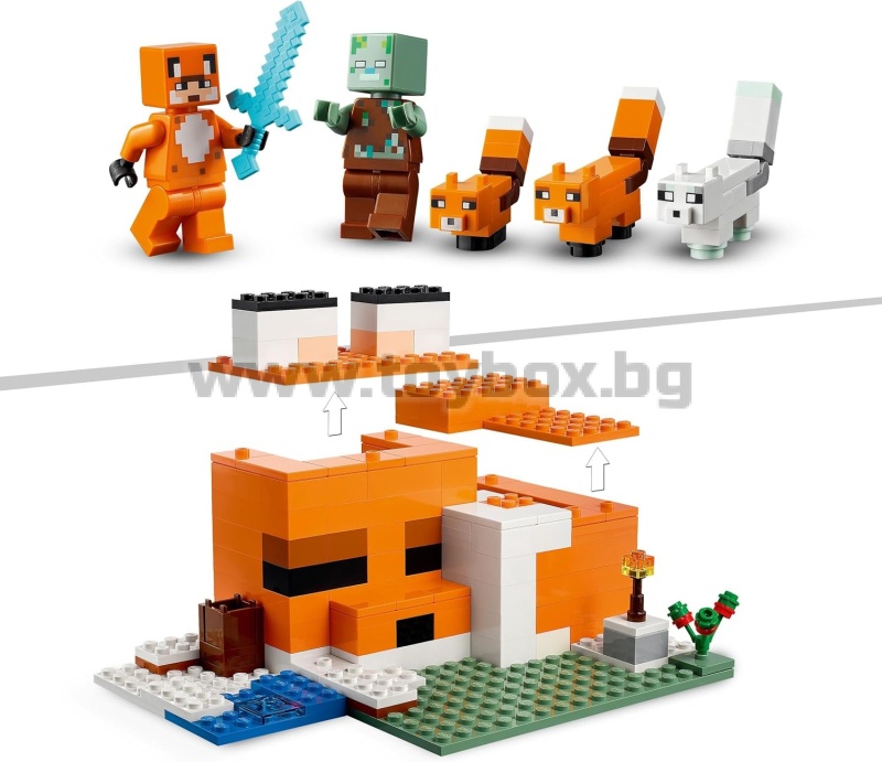 - Строителна игра на тема видеоигри за момчета или момичета над 8 години - LEGO Minecraft Fox Shelter (21178) включва много герои, аксесоари и функции, които да вдъхновяват безкрайна творческа игра.