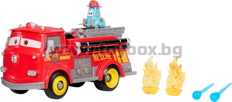 - Състезателната и спасителна пожарна кола Radiator Springs от Disney Pixar Cars, Червеният и Гуидо спасяват положението!