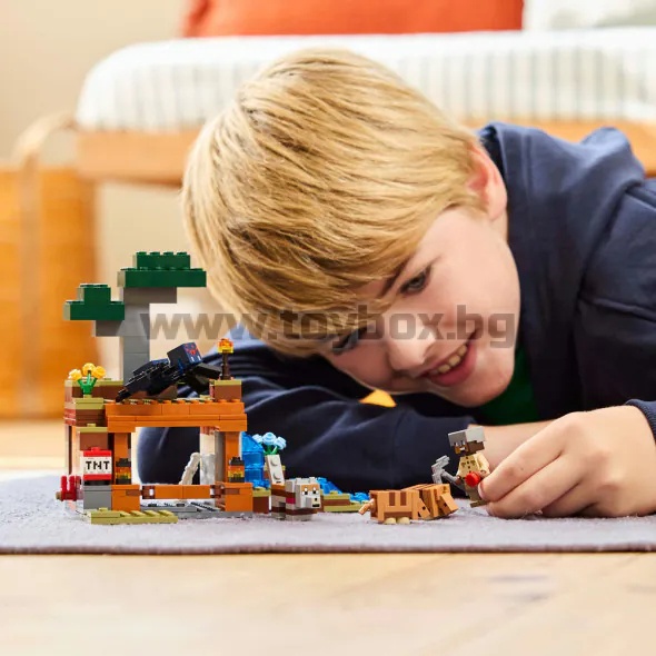 - Геймърска играчка за видеоигра: екшън забавлението се развива в мина в саванския биома, комплектът LEGO включва модел с лост, който взривява TNT.