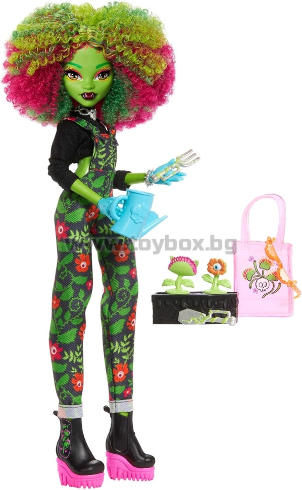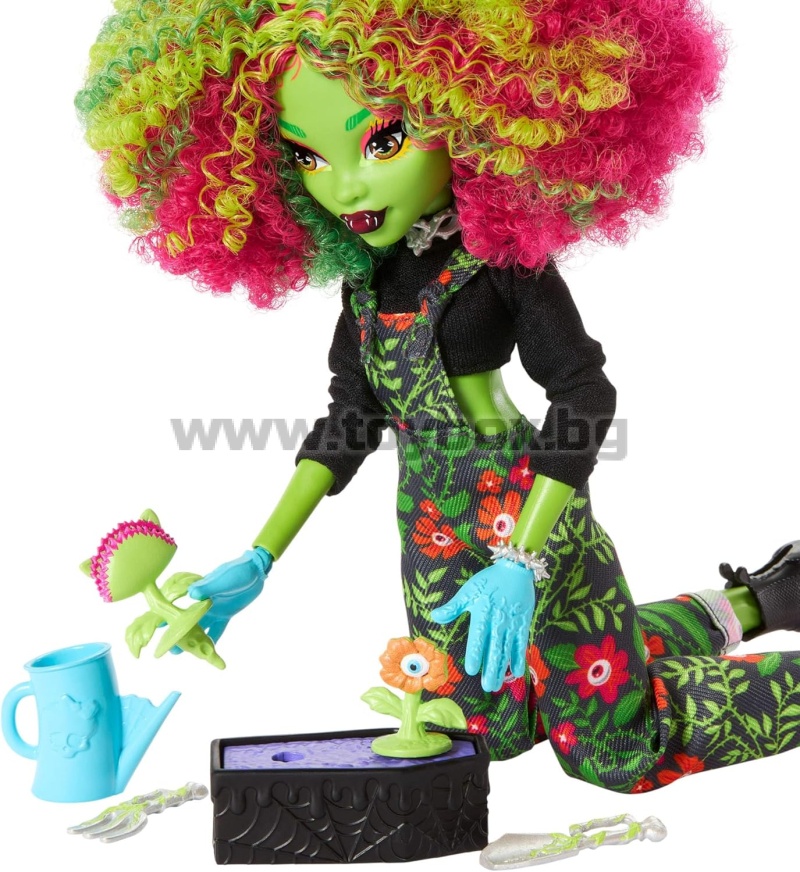 - Куклата Венус Макфлайтрап е готова за публикуване на снимка в „Дневник на ужасите на Monster High“! Тя се предлага с рекламен албум и много градинарски аксесоари, с които да председателствате среща на Клуба на любителите на Земята.