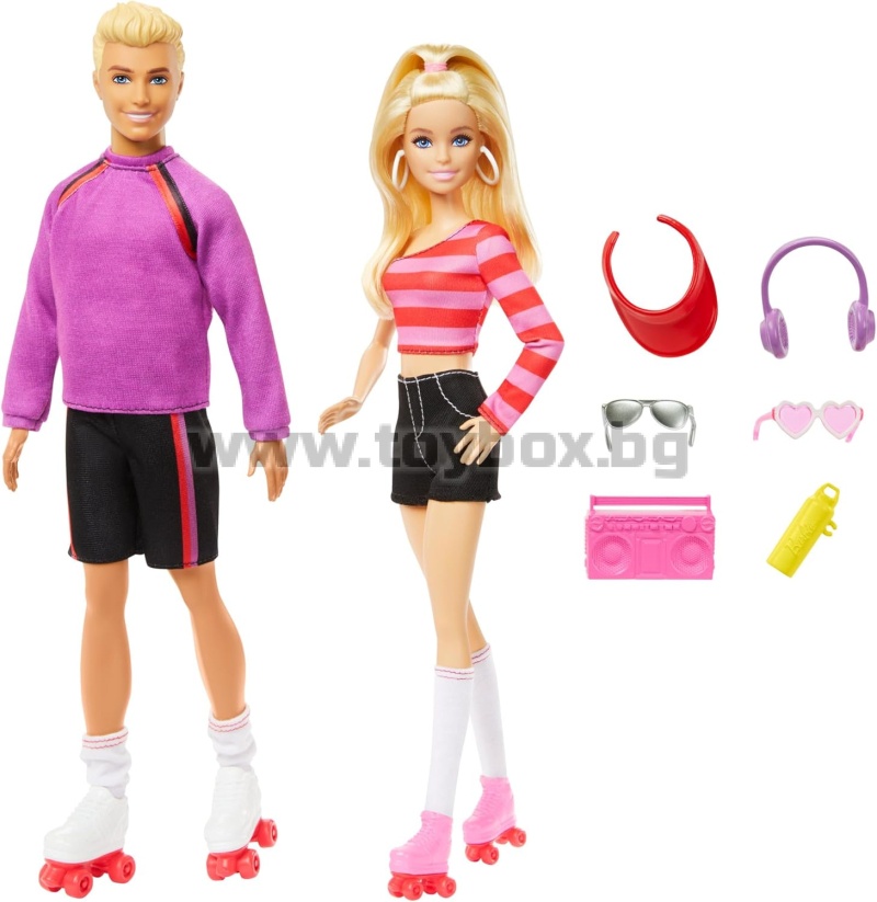 • Барби и Кен са готови да направят града опасен на своите ролкови кънки. Комплектът е вдъхновен от класическите екипировки за ролкови кънки и 6-те аксесоара от 80-те години.