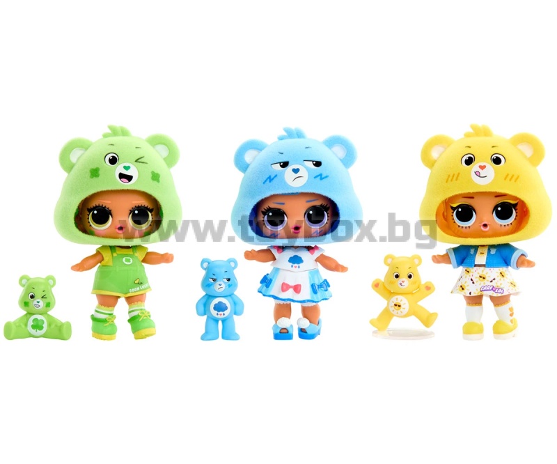 LOL Surprise! си партнира с емблематична марка, за да ти представи очарователна, уникална колекция, която не бива да пропускаш! Представяме ти чисто новата серия LOL Loves Care Bears, в която ще откриеш 6 нови кукли, всяка с модни визии и аксесоари, вдъхновени от световноизвестните герои Care Bears. Тази колекция съчетава магията на LOL Surprise с обичаните Care Bears за още повече цвят, настроение и колекционерско забавление!