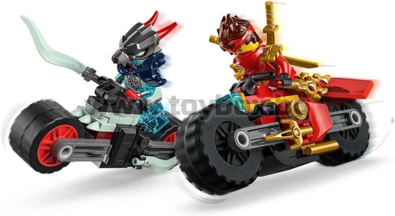 - Играчки мотоциклети за деца: Мотоциклетните състезания Kais позволяват на момчета и момичета от 6 години да пресъздадат вълнуващите състезания и дуели от 3-ти сезон на телевизионния сериал Ninjago: Rise of Dragons.