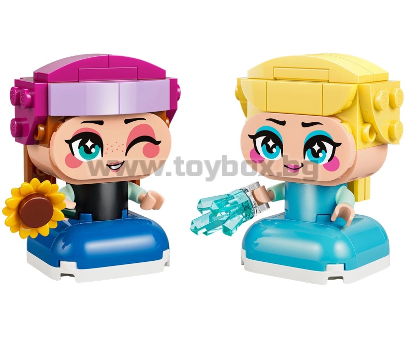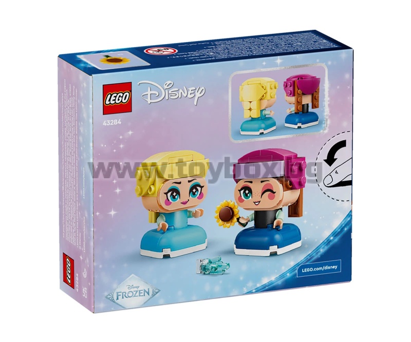 Подарете на децата на възраст от 5 години нагоре този комплект за конструиране на играчки LEGO® ǀ Disney Frozen Мини Анна и Елза (43284). Малките филмови героини Елза и Анна са създадени, за да предизвикат разказване на истории и игра, с включените аксесоари леден блок и слънчоглед. Всяка героиня има подвижни ръце и може да държи аксесоар. Те също така са идеални за сладка изложба и са част от по-голяма колекционерска серия, която включва и други играчки с героини на Disney Princess, направени от тухлички. Удовлетворете любовта на детето към Замръзналото кралство на Disney с играчка за конструиране, която е забавна идея за подарък за рожден ден или без повод като малък подарък за момичета и момчета и се комбинира с други комплекти за конструиране LEGO ǀ Disney (продавани отделно). Децата също така получават лесно, интуитивно строително приключение в приложението LEGO Builder за мащабиране и завъртане с 3D инструкции, както и запазване и проследяване на напредъка. Изследвайте нови приключения с Анна и Елза! Създайте тези две героини от тухли и дайте воля на творчеството си, докато решавате какво ви очаква. Има ли нещо ново, което да откриете зад следващия хълм? Какво ще кажете за построяването на нов замък с ледени блокове или да откъснете слънчоглед? От вас зависи. След вълнуващия ден на игра можете да изложите Елза и Анна на показ в стаята си до следващата игра!