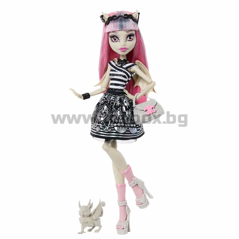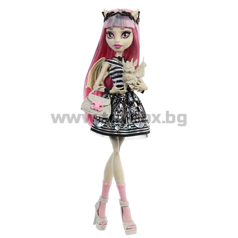 Monster High returns with spooktacular reproductions of the original ghouls, and they’re just as freaky-fabulous as they were on the first day of school! Clawdeen Wolf picked out this 5-piece outfit with her fierce fashion sense from her favorite boo-tique. From the faux fur collar to the clawsome peep-toe boots, Clawdeen's style is to-die-for. She also comes with her pet cat, Crescent, plus her top eek-ret diary, purse, and a skullete hairbrush.